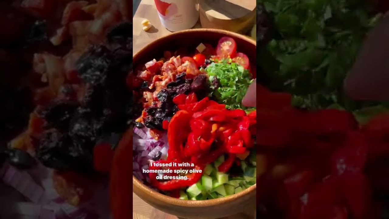 SPICY ITALIAN PASTA SALAD! With my @Kaizen Food Company LOWCARB + KETO PASTA – SO good! #lowcarb #lowcarbrecipes #keto #ketorecipes #mealprep #healthyrecipes