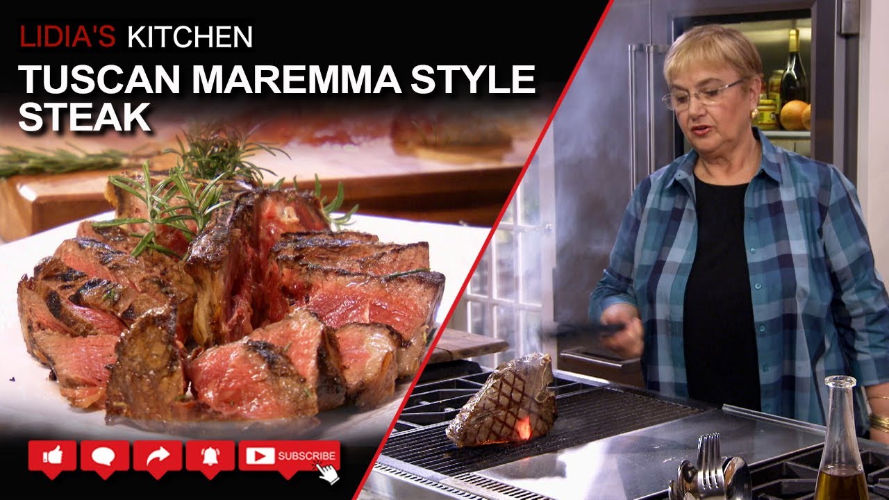 Tuscan Maremma Style Steak Recipe – Everybody loves a good steak, and this is a particularly impressive one. Even though the Italians in general are not big steak – eaters, the area of Tuscany around Florence is famous for its mammoth steaks, known as bistecca alla fiorentina. Maremma is a very rustic county in Tuscany— to the west, toward the Tyrrhenian Sea— where a substantial number of cattle are raised. The cut of meat used here is a Porterhouse, which is similar to a T- bone steak but with a larger cross- section of the tenderloin (filet mignon) along one side of the “T.” Either will yield good results, but choose a prime steak that has been aged properly for 2 to 3 weeks, and make sure it is cut evenly in thickness, with some of the protective outer fat left on.