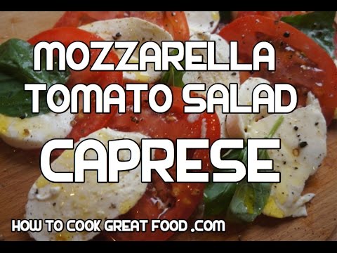 Caprese salad (Italian: Insalata Caprese, meaning “Salad of Capri”) is a simple salad, made of sliced fresh mozzarella, tomatoes and basil, seasoned with salt, and olive oil. It was made to resemble the colors of the Italian flag: red, white, and green. In Italy, it is usually served as an antipasto (starter), not a contorno (side dish) unlike most salads.