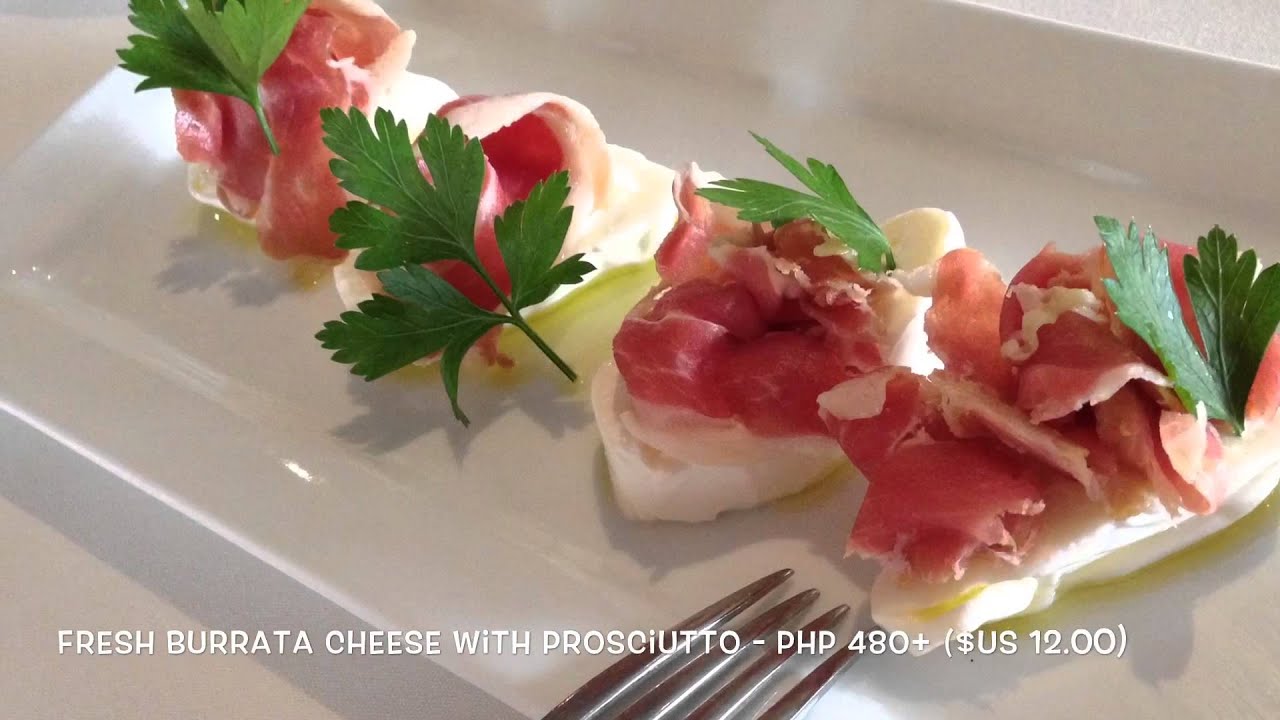 Tosca Italian Restaurant Dusit Thani Hotel Manila. An overlooked fine dining Italian restaurant at the Dusit Thani Hotel. Highly recommended are their Fresh Burrata Cheese and Napoletana Pizza. Burrata is imported from Southern Italy and is a creamy version of Mozzarella, their pizza is one of the best in Manila, thin, airy and crispy with high quality toppings.