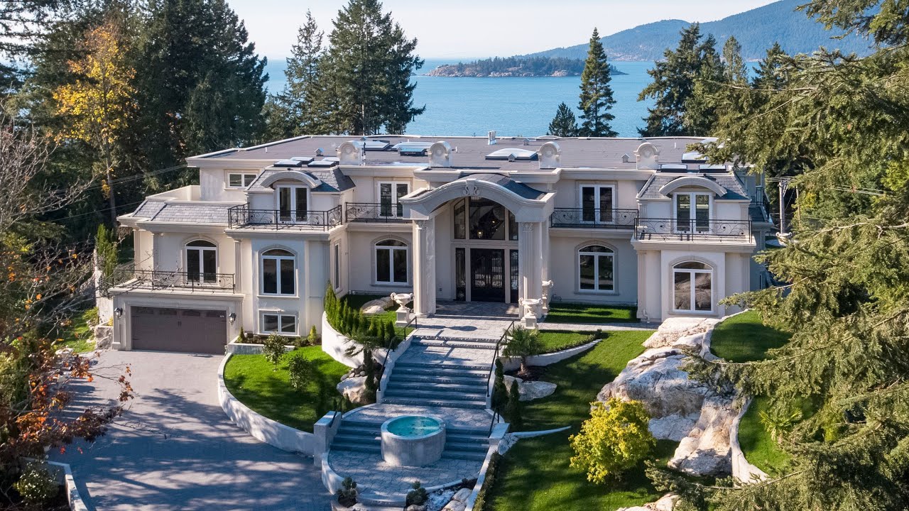 Come for a drone tour of this 12,254 sq.ft. 3 level custom built Italian Designer Luxury Mansion. This Architectural Masterpiece Majestically sits above the West Vancouver Waterfront with 180 degrees forever Ocean Views. Featuring 7 bedrooms, 8 & 1/2 bathrooms (7 ensuites) with multiple view terraces. Handcrafted with European Sophistication & the finest imported materials. A private & gated Mediterranean style estate sprawling across almost 1 acre with geometric hedges & palms reminiscent of the great villas in Italy. Massive 4500 sqft ocean view deck with pool & jacuzzi. Austrian Crystal Chandelier, 20 ft ceilings, A/C, 5 fireplaces, Wok Kitchen, Milano & Monaco infused decor. Theatre Room, 3 home offices, Elevator, Wine Cellar, Gym, Sauna, Sprinkler system, EVC in the garage. Finest heating/cooling/sound/security system.