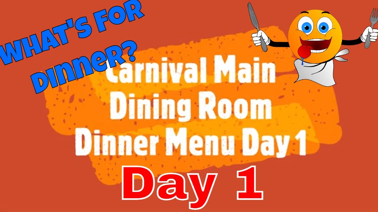 This menu goes over the dinner food items that’s on most Carnival Cruise ships on the first evening such as: Sweet and Sour Shrimp, Roast Chicken, Braised Beef Brisket, Grilled Mahi Mahi, Vegetable Lasagna, Featured Indian Vegetarian, Grilled Chicken Breast, Broiled Flat Iron Steak