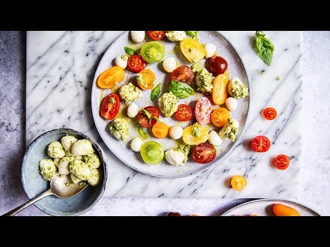 We have this Caprese Salad all summer long, on repeat! It’s that good! Using cherry tomatoes adds a touch of sweetness to this Italian classic, while marinating the mozzarella pearls in basil pesto amps up the taste!