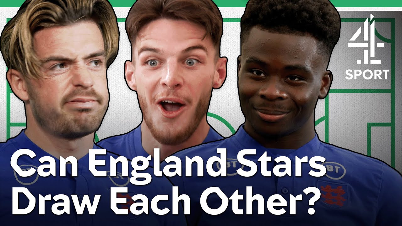The Three Lions players, Jack Grealish, Bukayo Saka & Declan Rice chat with Ade Adepitan whilst drawing each other, current and former England stars.
