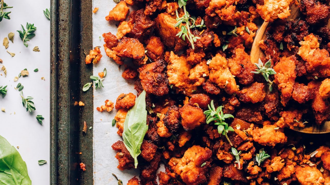 Crispy tofu that tastes like pizza! A simple, endlessly versatile, and protein-packed topping for polenta, pasta, wraps, and beyond! Vegan, gluten-free, and bursting with herby goodness!