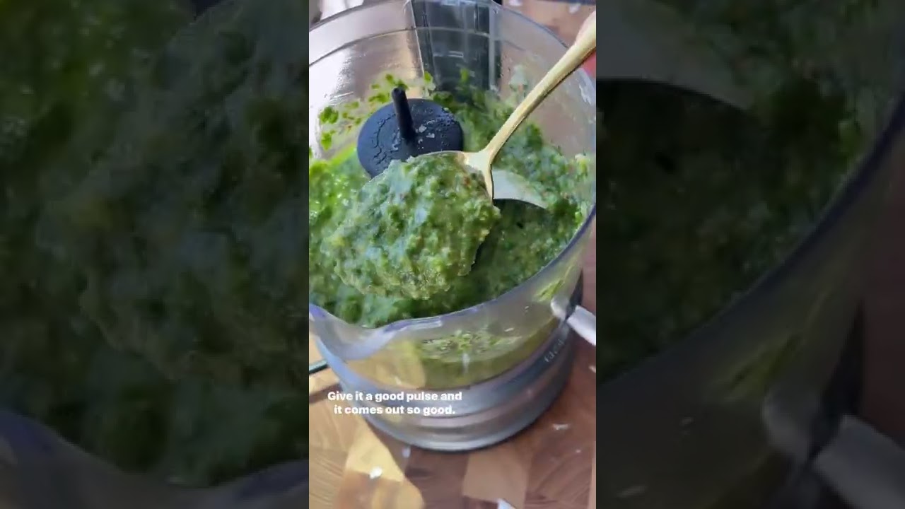 For the Pesto: Process together 1/2 cup good olive oil, 2-3 garlic cloves, 1/2 cup of cool TOASTED pine nuts (toast them on the stovetop and cool down), 2 oz of fresh basil (remove stems), 1 cup of freshly grated pecorino Romano, a small pinch of sea salt, and pepper. Process well, taste, and just as needed.