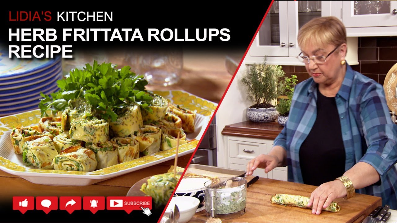 Herb Frittata Rollups – Italians love a good picnic, and Lidia shares some of her favorite picnic foods from her childhood. Let’s start with Herb Frittata Rollups, a must-have finger food rolled up with a layer of flavor packed pesto.