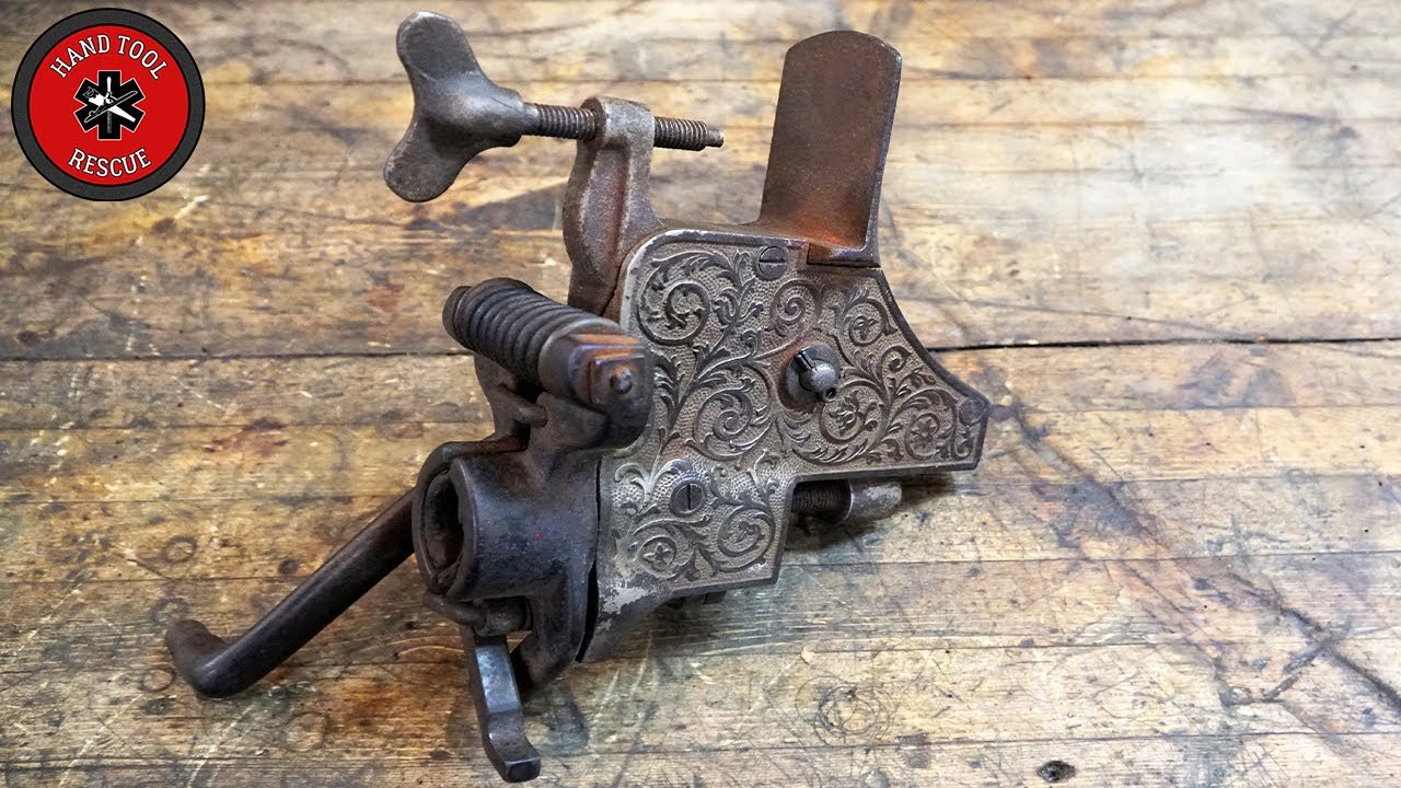 This restoration is on a 1908-patented “Yankee” wine corking machine made by The Gilchrist Company. The tool immediately caught my eye with its ornate floral scrollwork castings and gizmocity. It was so complex that I actually could not figure out how it actually functioned until everything was all restored and back together.