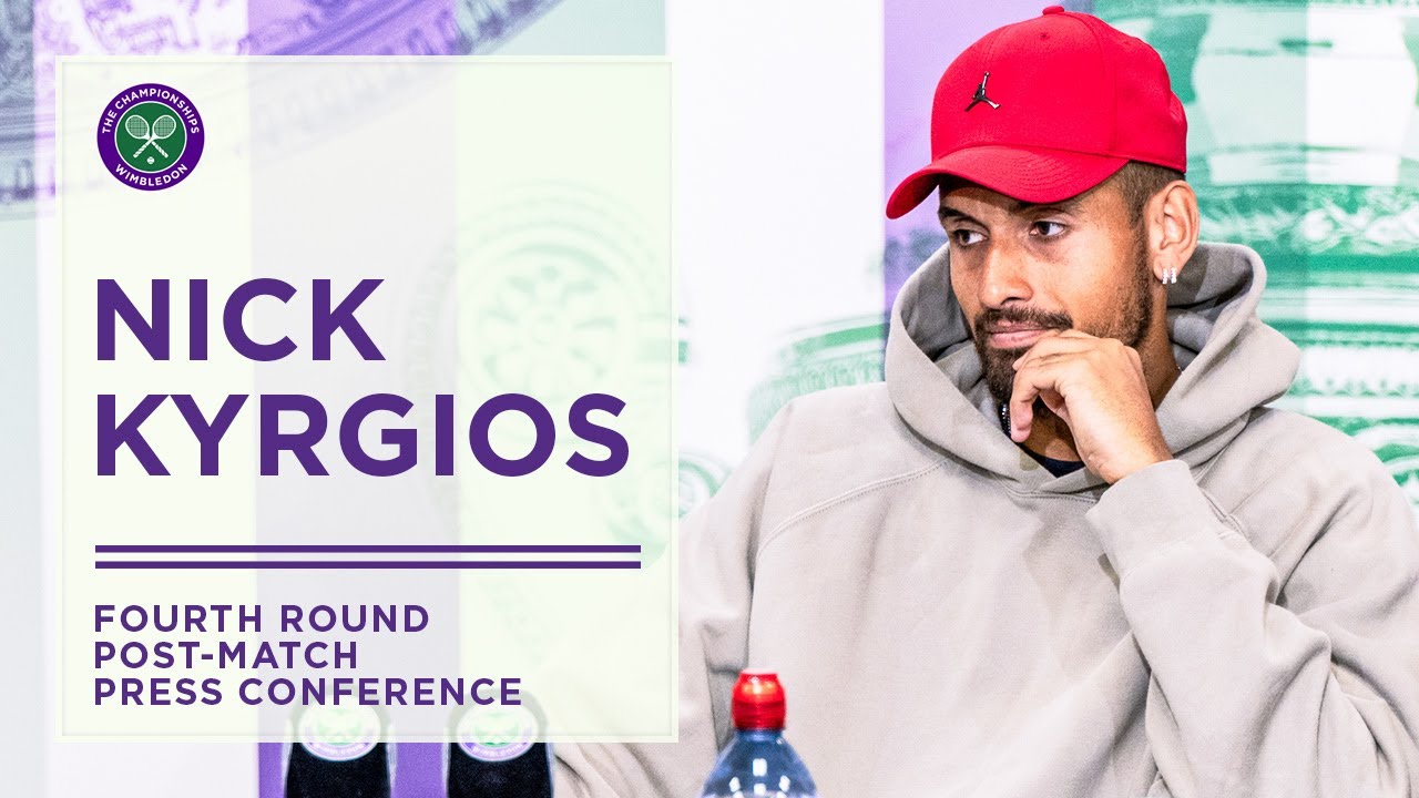 Nick Kyrgios speaks to the media after his Centre Court win over Brandon Nakashima took him to the quarter-finals of The Championships.