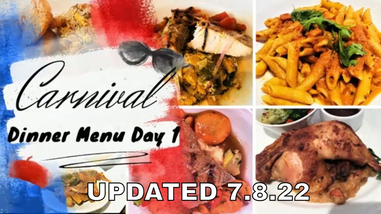 Carnival Cruise Main Dining Room Day 1 Menu and Pictures July 2022