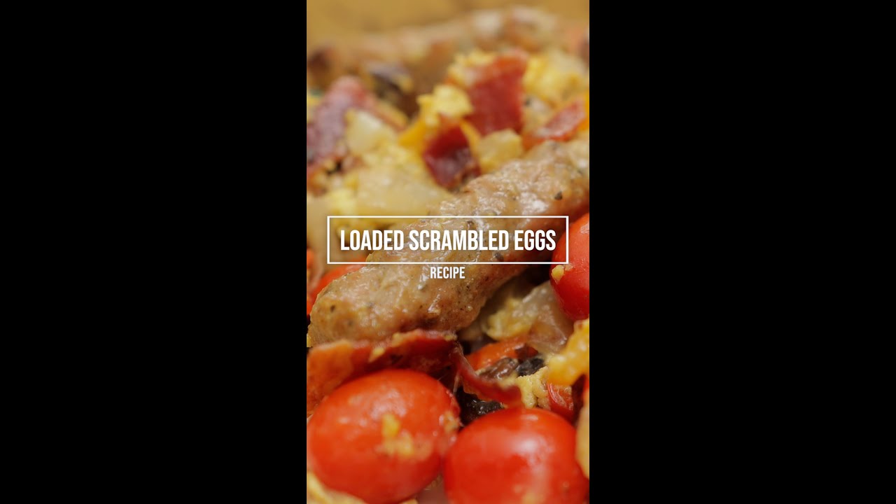 I don’t love eggs, but I absolutely love this Ultimate Scrambled Eggs Recipe. Perhaps that’s because its full of delicious ingredients like: olive oil, eggs, cooked sausage, mushrooms, peppers, onions, spinach, cherry tomatoes, salt, pepper, oregano, cheddar cheese, Parmesan cheese and bacon! What do you like in your scrambled eggs?
