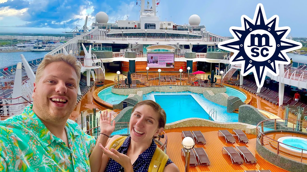 Welcome onboard the MSC Divina here in Port Canaveral Florida! We are here today for a travel agent ship tour, which is where the cruise line’s sales team will let travel agents onboard a ship for a few hours to tour and get to know the vessel while it’s in port! This is a very exciting day because not only is it the first time travel agent ship tours have been available since COVID, but this is also our first time stepping foot onboard an MSC ship! These travel agent events are very fast paced as we bounce across the ship, so this tour won’t be as detailed as usual for us, but hopefully it gives you a good idea of what some cabins, public spaces, and venues are like onboard!