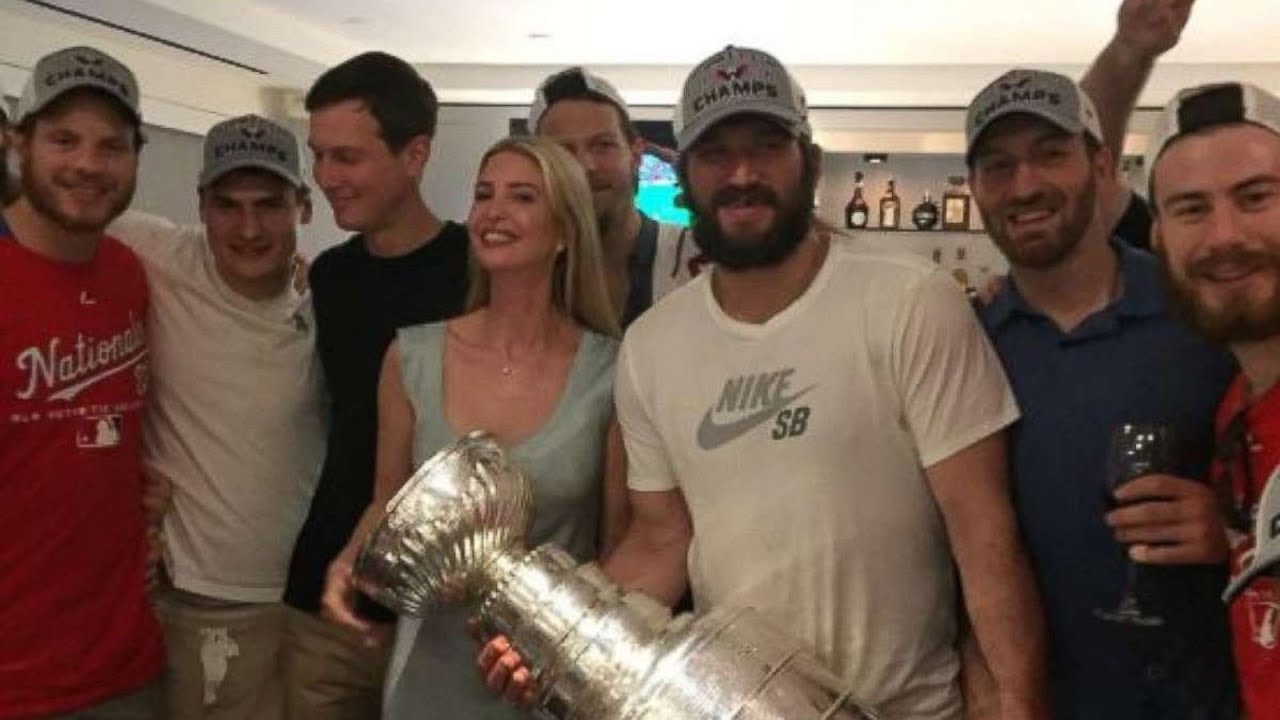 The two biggest items in Washington, D.C., crossed paths on Saturday night as Ivanka Trump and Jared Kushner posed with the Stanley Cup. It was a matter of pure coincidence as the president’s daughter and son-in-law visited D.C. hotspot Café Milano for a date night while Washington Capitals star Alexander Ovechkin was celebrating with the Stanley Cup. The Capitals won the Stanley Cup, the NHL’s championship trophy, on Thursday. They defeated the underdog Las Vegas Golden Knights in the series, 4-1, to win their first Cup. The Keeper of the Cup Philip Pritchard, who has traveled with the Cup as its overseer for 27 years, posted a photo of the trophy with a casual Ivanka Trump and Kushner. Jokes about the Trumps meeting with a Russian flooded Twitter, but everyone at the restaurant seemed to be enjoying themselves. ABC News’ Kenneth Moton happened to be at Cafe Milano, Franco Nuschese’s trendy Italian dining spot, when the partying Capitals arrived and filmed the Cup’s grand entrance. Ovechkin had quite the day with the Stanley Cup. He had visited Nationals Park to throw out the first pitch before the Giants played the Nationals Saturday afternoon. Plenty of Twitter users also captured Ovechkin frolicking in a fountain in the nation’s capital Saturday, as well.