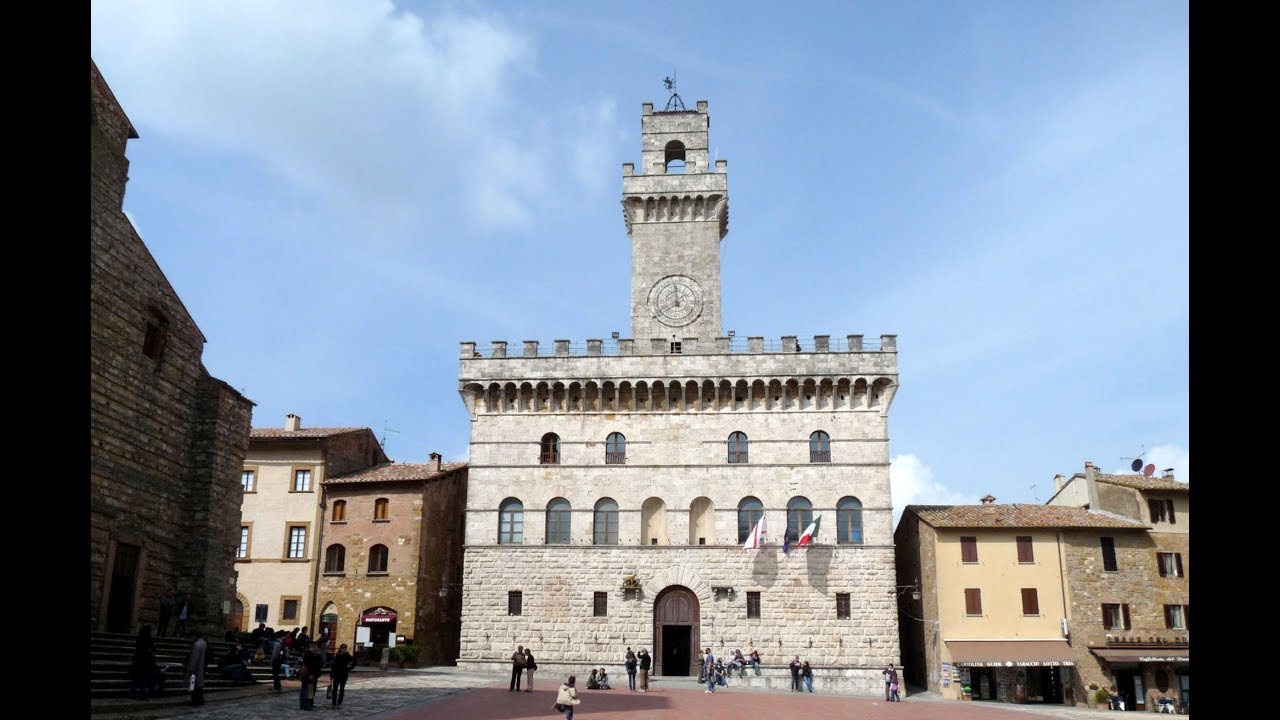 The Town Hall of Montepulciano rises on the western side of the Piazza Grande. Work began at the end of the 14th century and continued until 1440 with the construction of the Florentine-style façade attributed to Michelozzo, at the center of which rises the civic tower. The ground floor of the prospectus is covered in ashlar, while the upper levels are in travertine; the crowning is a protruding gallery with Guelph battlement. Inside there is a courtyard with two superimposed loggias.