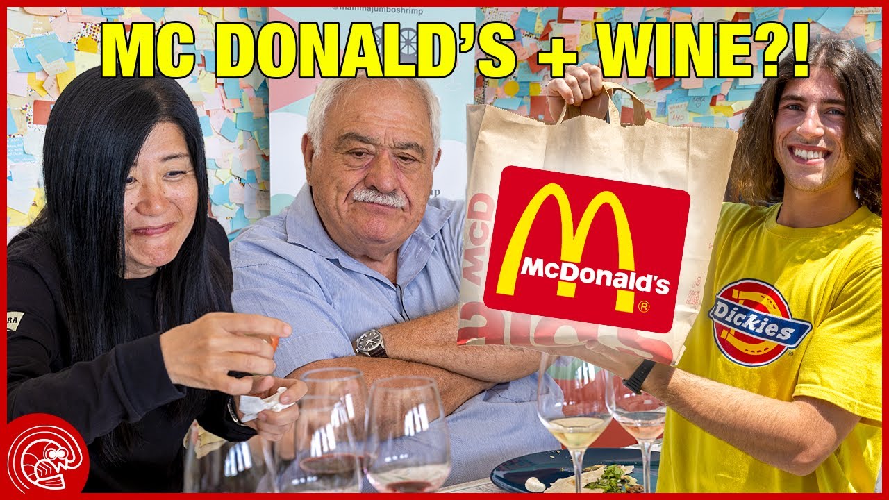 Welcome to our McDonalds and Wine pairing episode, hosted by Stevie Kim. Stevie sits down with Professore Attilio Scienza, and Mattia Rizzi (aka Burger Boy) to eat an array of Mcdonald’s menu items… like nuggets, burgers, and wraps… and taste some delicious wines! So what goes with Mickey D’s? someone out there must be wondering… well find out!!