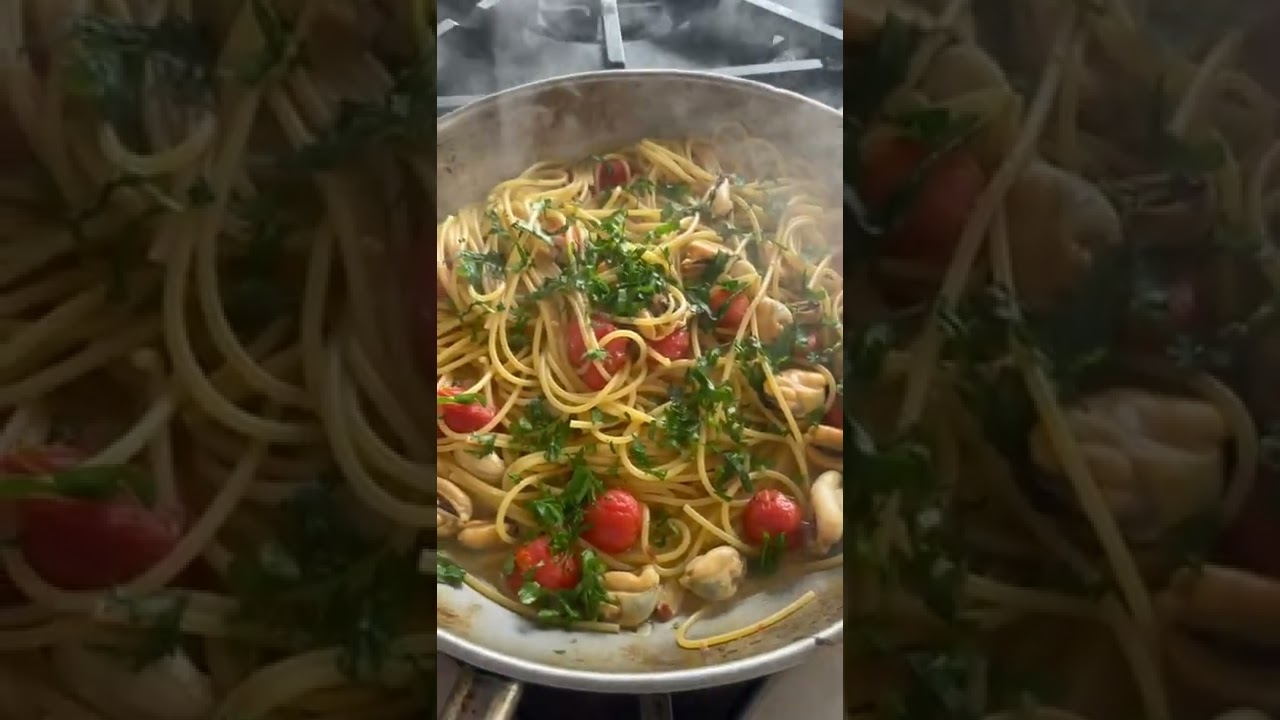 In a skillet sauté garlic with 2 tbs olive oil, add red pepper flakes and soon after mussels, stir in white wine and cook over medium heat until mussels are open. Discard shells add roasted tomatoes to the skillet. Cook pasta according to directions but drain three minutes earlier. Toss and finish cooking over high heat with the mussels’ mixture, and if needed add reserved cooking water. Turn heat off, stir in parsley and remaining olive oil. Sprinkle with grated bottarga before serving #seafood #pasta #shellfish