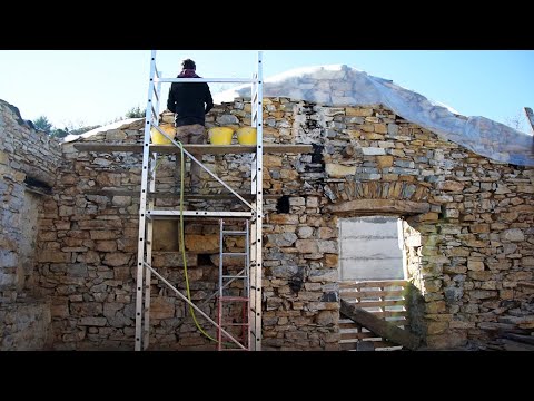 In this episode we start fixing our stone walls. Removing the roof beams and the plaster created a few big holes, and many smaller ones, that we will be filling with stone and a mix of lime and sand.