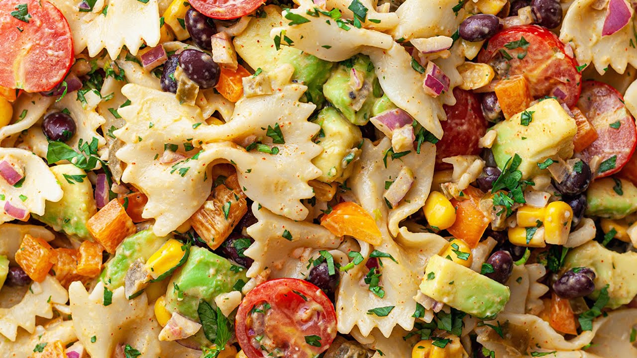 Super fresh and seriously delicious, we’re literally obsessed with this pasta salad right now. It’s the ideal midweek meal: packed with veggies and you can whip it together in less than 30 minutes.