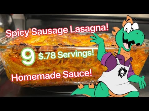 Hello and welcome, in this video we’re making a budget lasagna with a homemade sauce with spiced up ground sausage! The lasagna comes to $7.05, or 9 $0.78 servings!