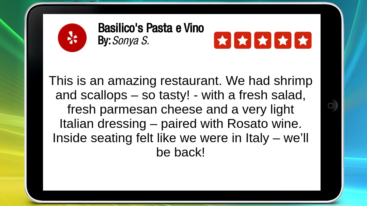 (714) 963-7980 Basilico’s Pasta e Vino Huntington Beach 5 Star Reviews ~ One of our Favorites! Thank you Sonya ~ We’ll See You Soon!: