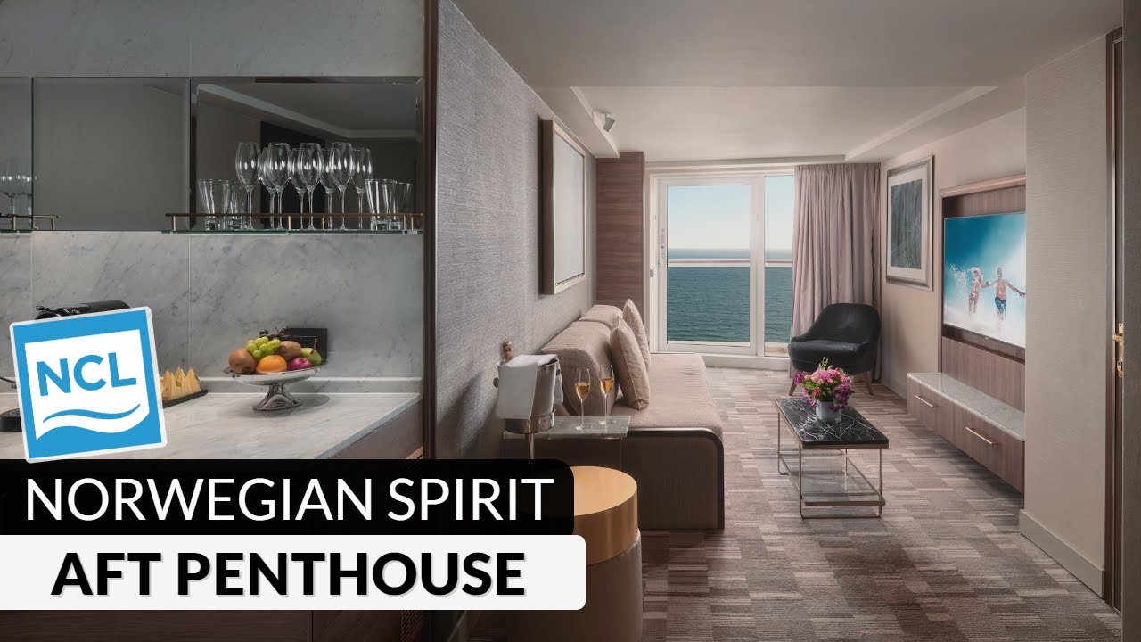 Join Danny as he tours a Aft-Facing Penthouse Suite with Large Balcony aboard the beautiful Norwegian Spirit. Freshly renovated, these two aft categories in Danny’s favorite location on the ship. Relax inside with a ton of room to spread out, and enjoy the wake view from your double-wide outdoor balcony.
