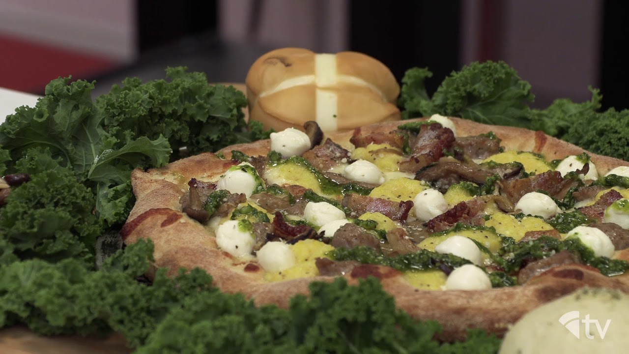 Ragoโs pie, called Out of the Woods, showcased a toasted hempseed crust topped with Galbani Premio Mozzarella and smoked Scamorza cheeses. Rago then added polenta with poppy seeds, homemade Italian sausage, guanciale and a medley of wild mushrooms. After it was baked, the pie was finished with some mozzarella pearls, a drizzle of arugula pesto made with herbs, grated Parmesan cheese, pistachios and True Horizons CBD-based extra-virgin olive oil. Rago dusted the entire pizza with hemp seeds for flavor and texture.