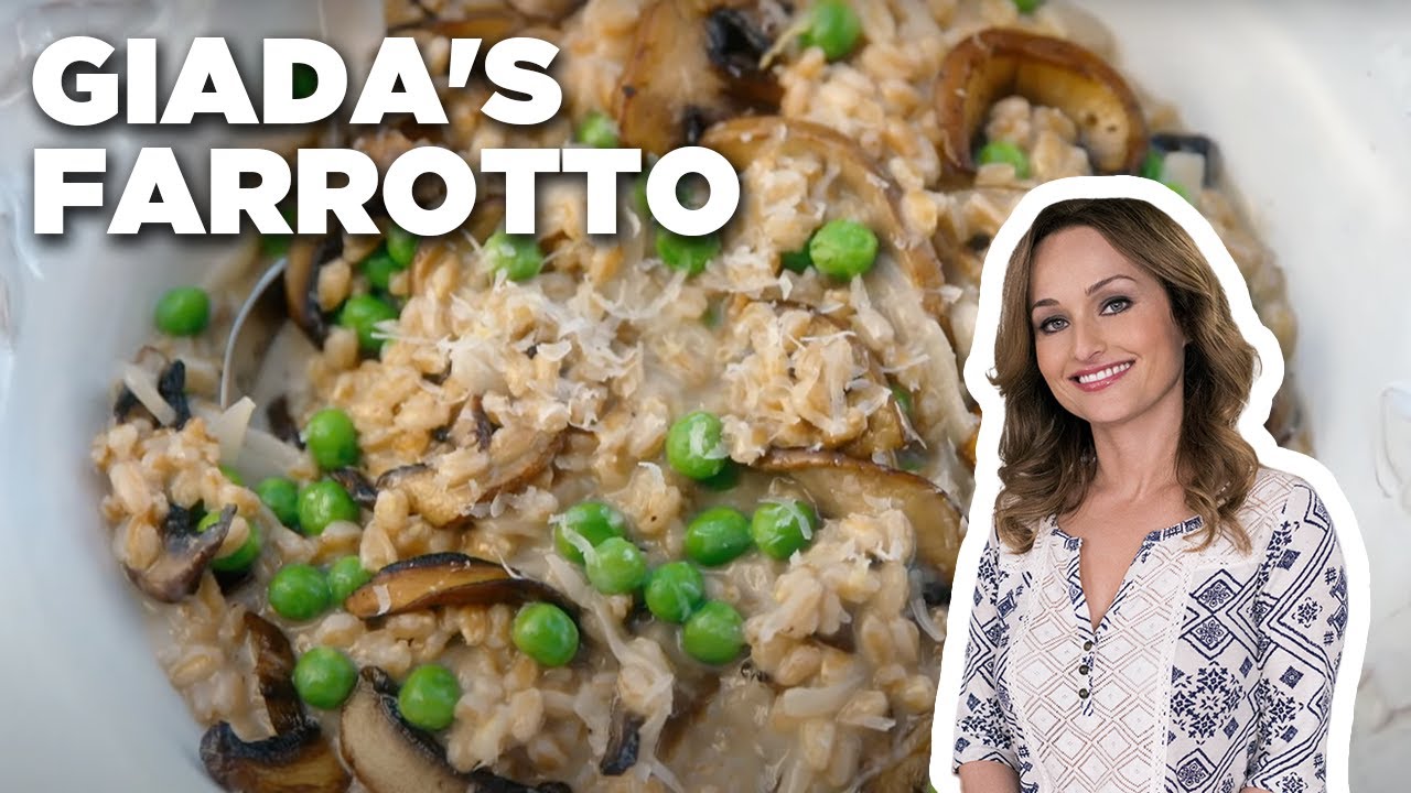 Giada shares her secrets to making a hearty vegetarian Mushroom and Pea Farrotto!