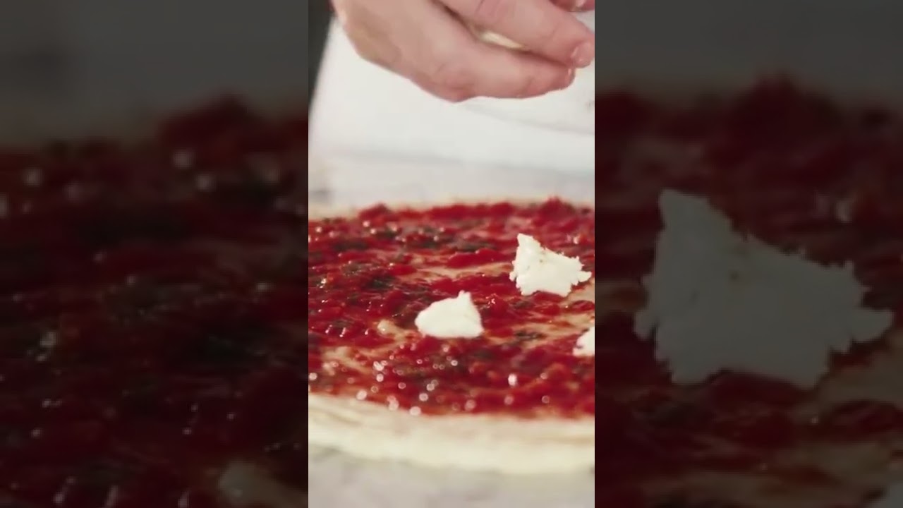 Italian chef making margaritta pizza with tomato Sause and mozzarella, #shorts street food