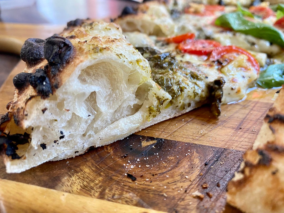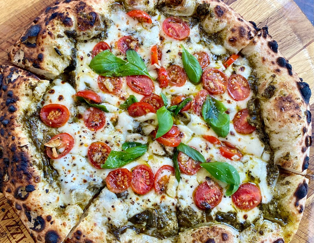 Next time, don’t cook the pesto, and put it on after the pizza is out of the oven.