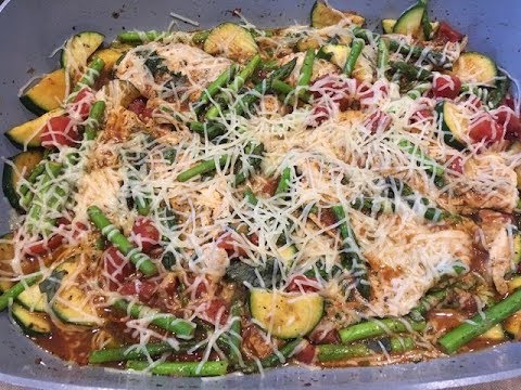 A healthy, low fat one pot wonder. Chicken breasts, zucchini, asparagus, tomatoes, and fresh basil create this mouth watering meal in just minutes. A “must make”!