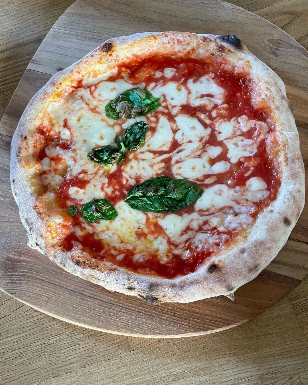 Margherita with San Marzano from La Fiammante and fior di latte from Latteria Sorrentina, and basil (Napoletano Bolloso)