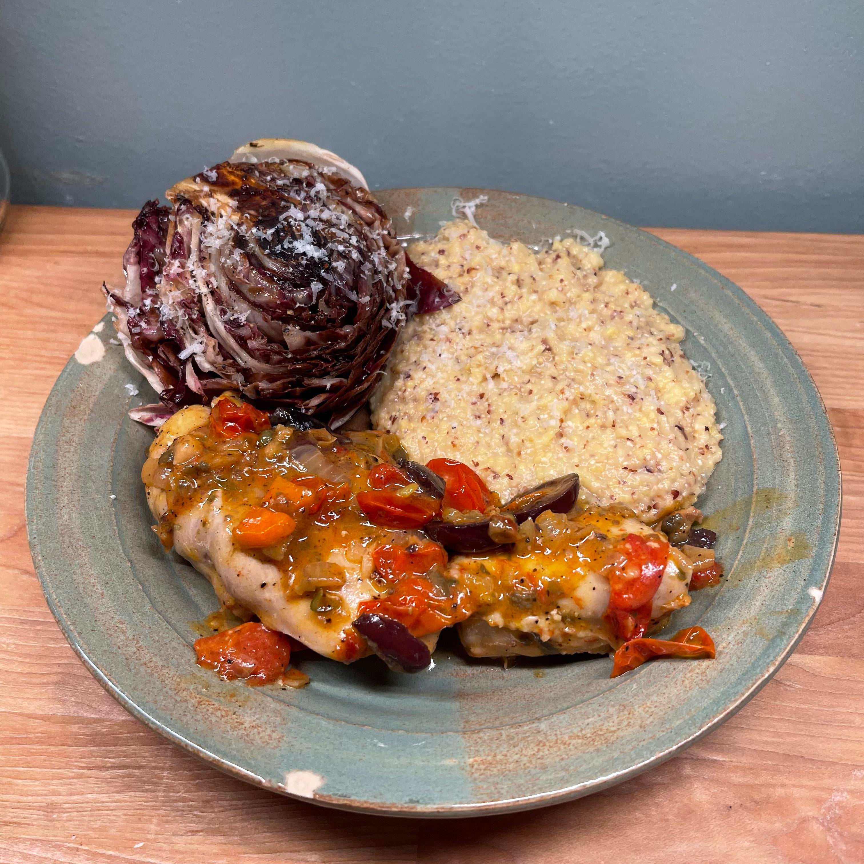 I think the side plate cleaned and may be in a different plate (like a bowl) with the chicken on top of the polenta, and sliced cabbage, it would have been great.
