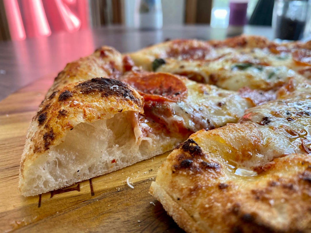 The crust looks EXCELLENT. Looks good but it’s an American pizza, certainly not Neapolitan. Pepperoni? You would never get pepperoni on a Neapolitan pizza and with so much cheese.