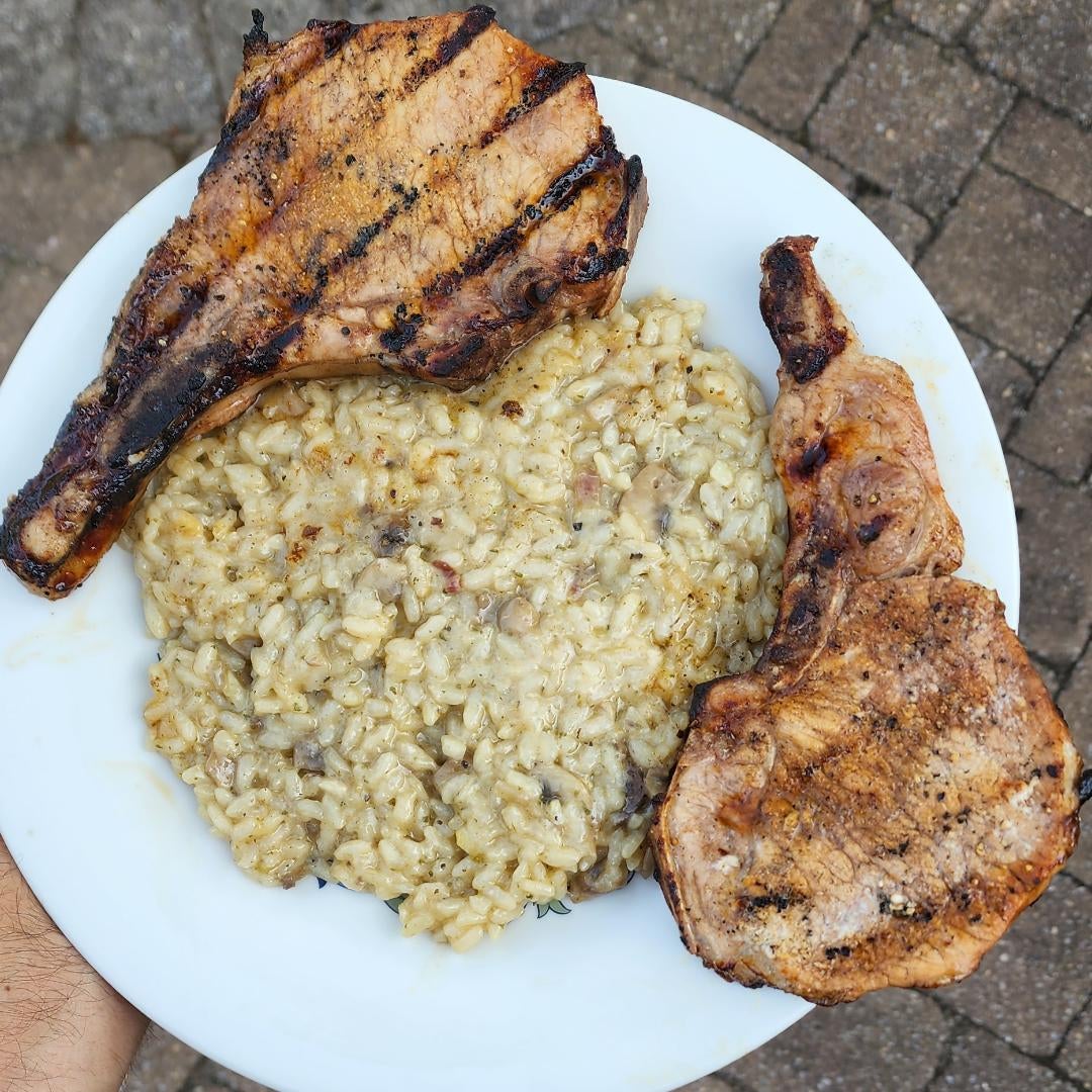 Balsamic, white wine and garlic pork chops with mushroom and shallot rissoto.by damnsonyeahson93kg homemadeitalian foodItalian Recipes 3 Comments ChakaKhansBabyDaddy 4 years ago Looks fantastic Hairy_Aspect_284 4 years ago That is beautiful. emepol 4 years ago Yummi…Write A CommentYou must be logged in to post a comment.