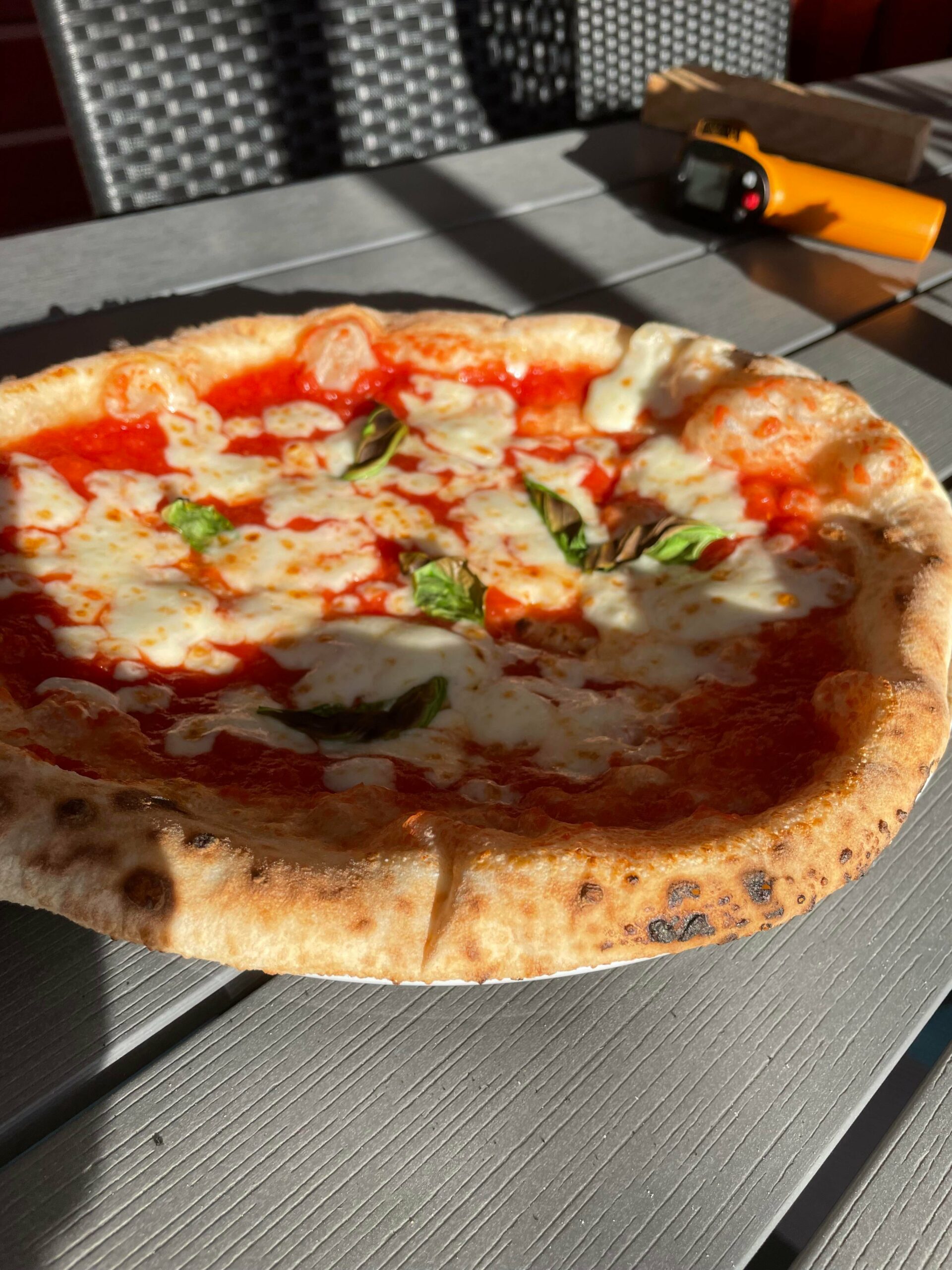 That pizza is beautiful, and I’ve cooked/served something like 50,000 Neapolitan pizzas in my life. We of course used wood, as opposed to gas like most of this sub. It’s interesting cooking high volumes so quickly. We averaged about 80 seconds at 800-900F. Toppings and amounts of cheese obviously impact cooking times, as does dough condition and temperature. I would regularly have three in there at a time, on a busy night I could get it up to 5. I got 6 in there a few times, but normally the deck is too hot at that point to fit 6 without burning the bottom. 6 is also too many to rotate every 15 seconds, so they don’t cook super evenly. Anyway, well done my friend! The cheese is perfect and the crust is cooked perfectly, the dough just needed a couple more hours at room temp to proof, and that’s where the bubbles inside the rim came from. I assume it was also tight and difficult to roll/stretch because of that. Dough is seriously difficult to manage because temperature/humidity/barometric pressure all impact the way it proofs, and recipe adjustments are necessary to compensate.