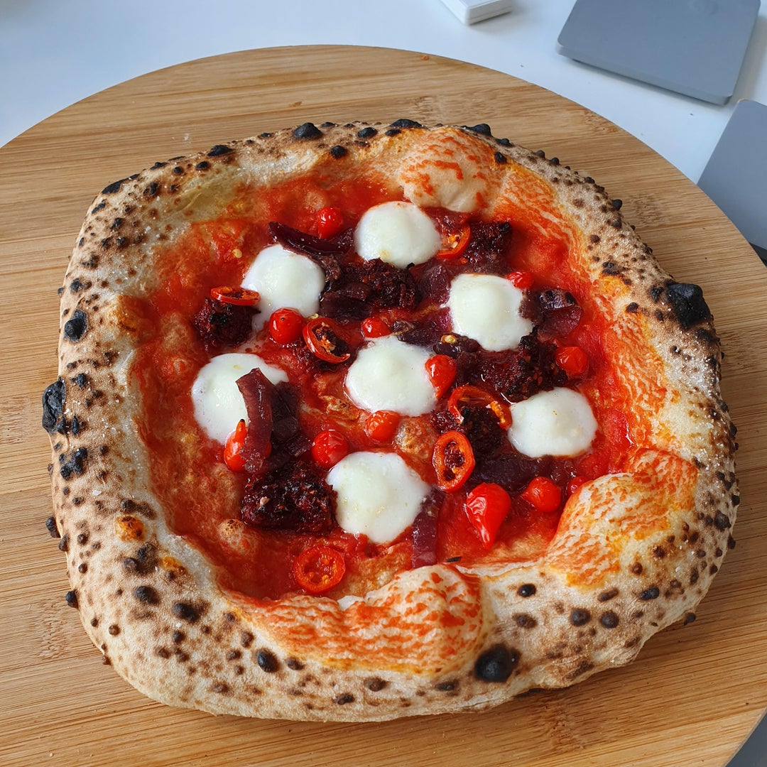 If I read the recipe right, you made 3 pizzas from 1500g of dough.