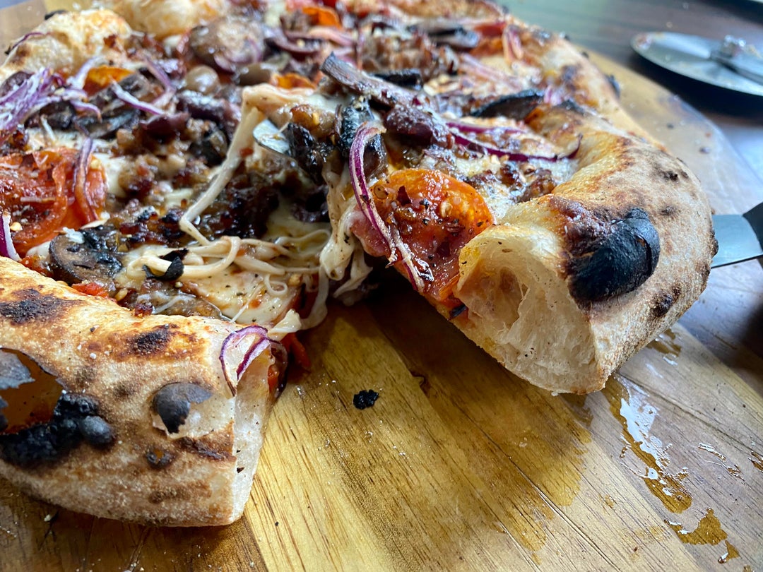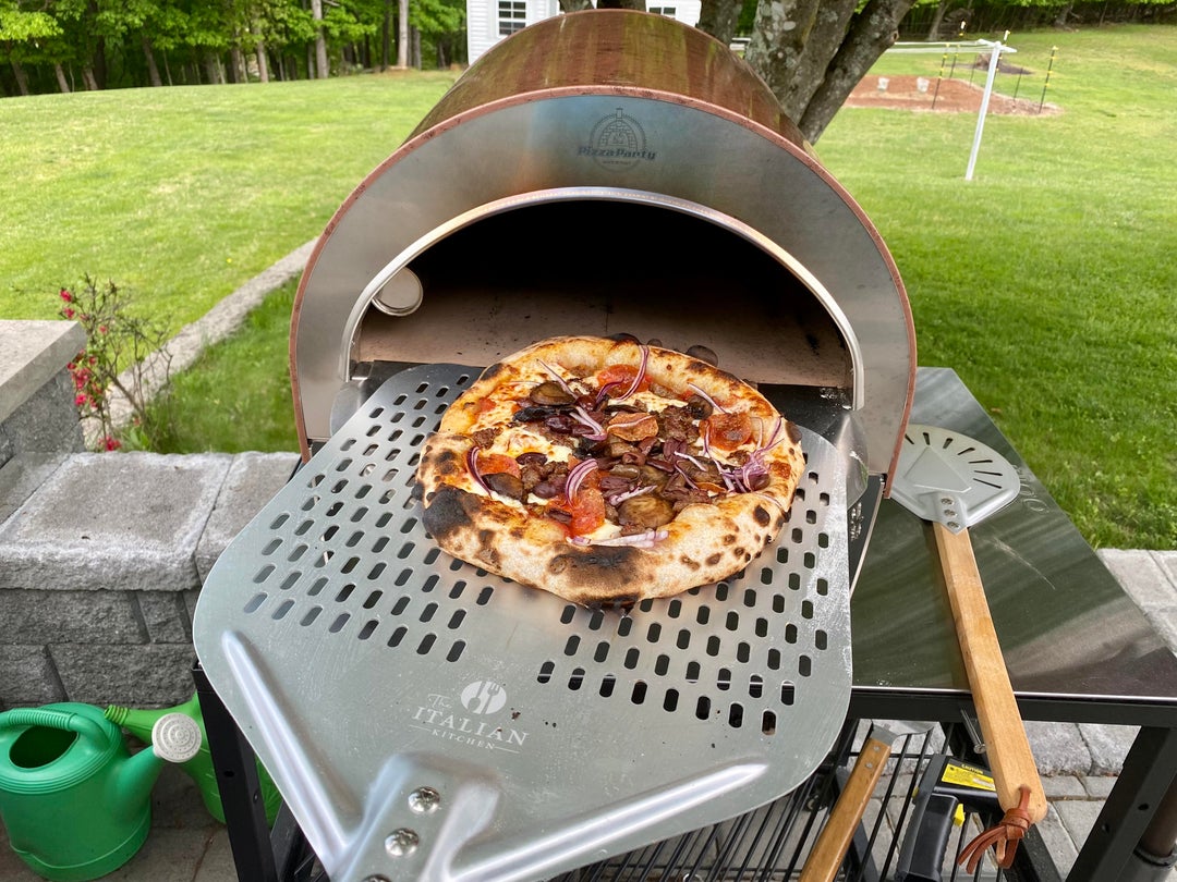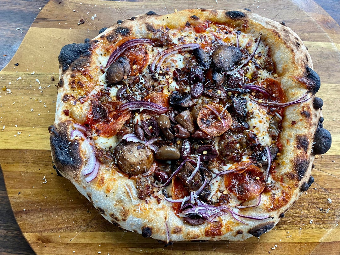 Tried my first sour dough pizza today. I’ve been working on the sour dough starter for about 10 days or so and made up a couple dough balls yesterday. Let them cold ferment in the fridge for about 16 hours. Crust did great and was quite surprised how you could tast the sour in the crust. This was a Italian sausage, pepperoni, mushroom, red onion and black olives. The Ardore oven cooked it great with all the toppings. No disappointment at all.