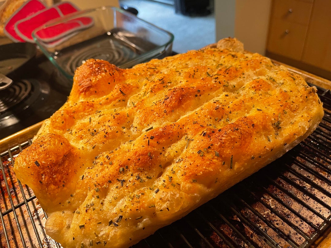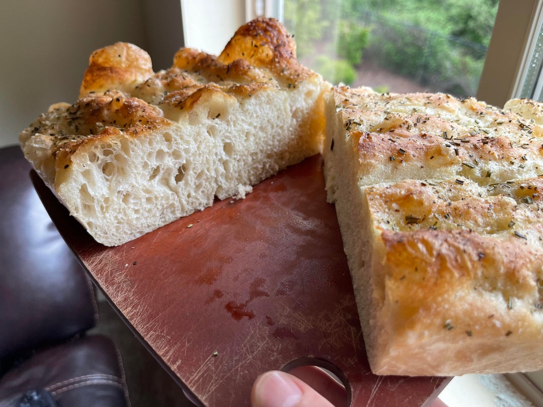 Anch’io ho fatto della focaccia. E proprio buona ma ci serve tanto lavoro, e tanto olio! Ben fatto.