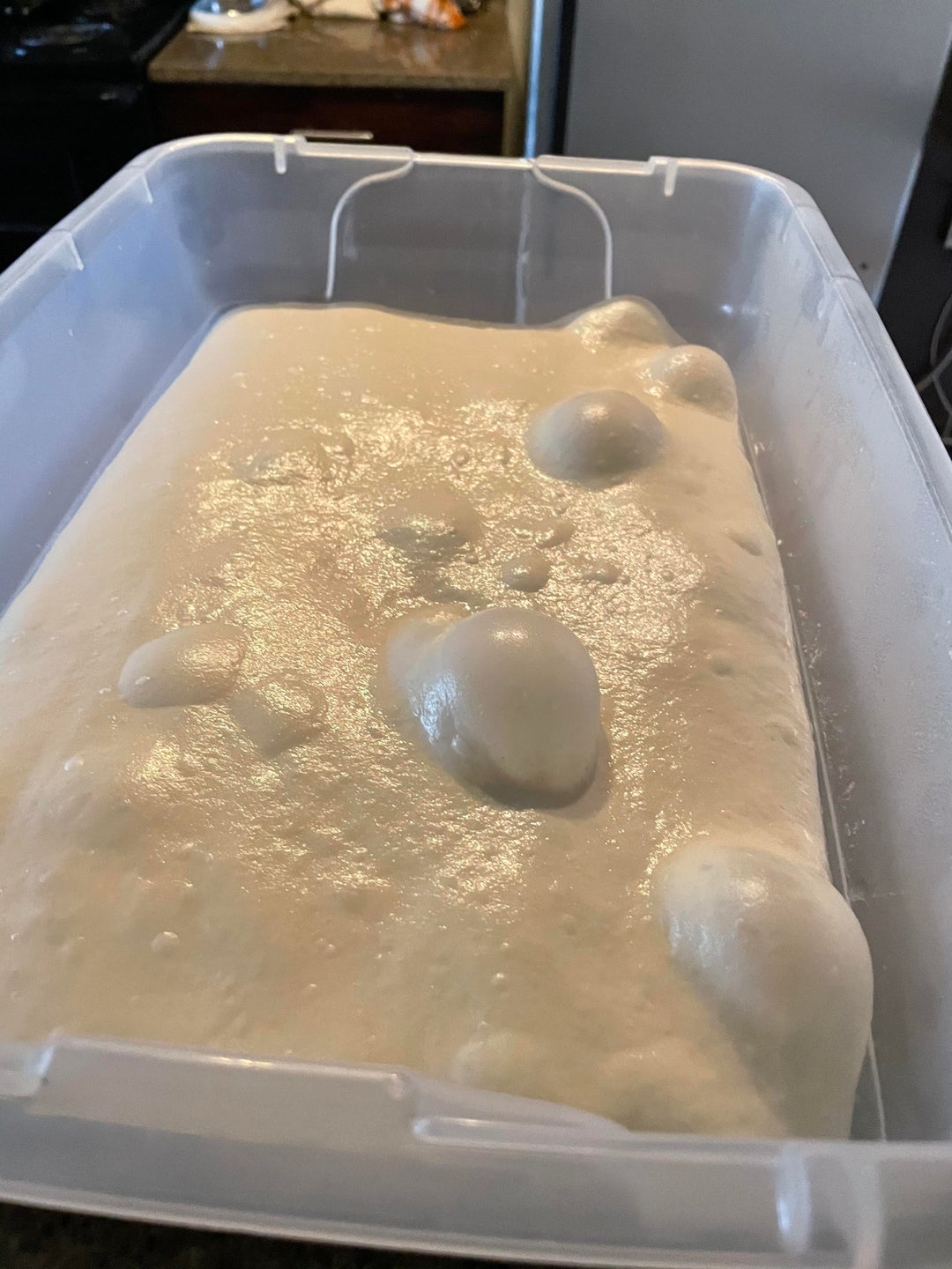 Made with 16 hour poolish did 3 coil folds until the dough was real strong. If you have one of those good mixers you can just mix it until it’s strong and skip the folds. Had to put oil and sugar to the dough to help better browning.