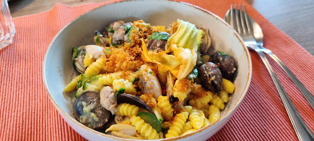 malloreddus with bottarga and zucchini flower
