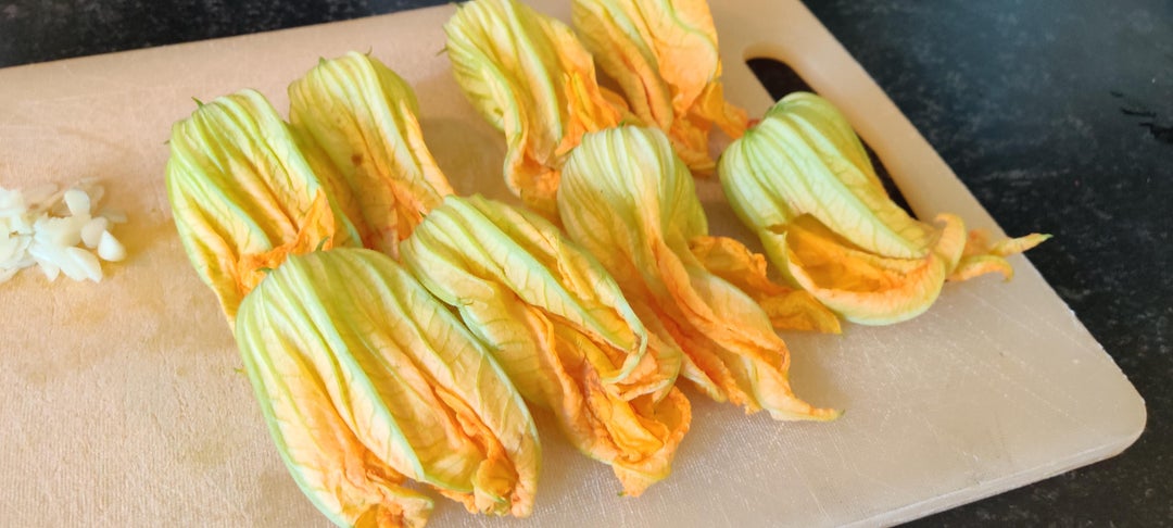 Zucchini flowers are probably the most difficult part because they are not really common to find outside Italy. Which is a pity because they are delicious! They are great in so many dishes. Best are the tempura deep fried ones! Nomnomnom