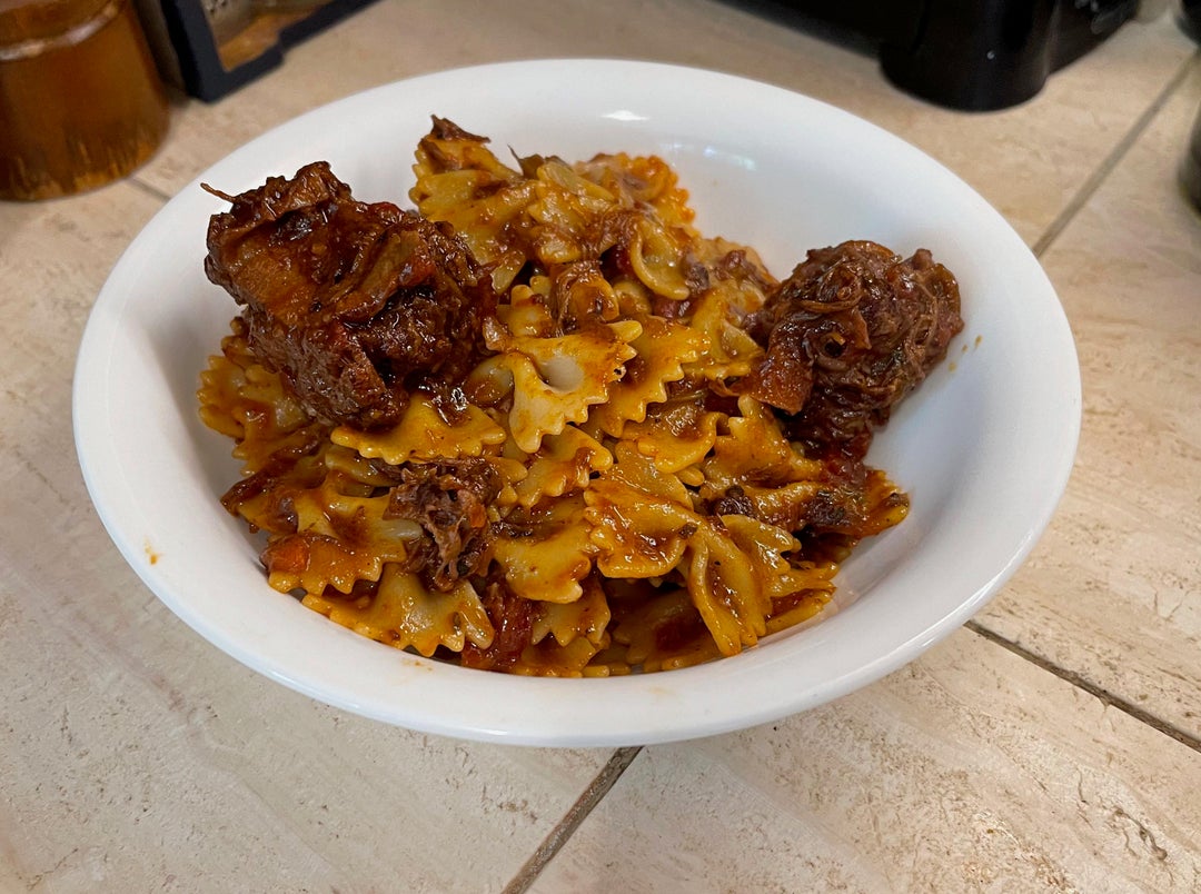 Farfalle alla Short Ribs Raguby cayobo homemadeitalian foodItalian Recipes 5 Comments joemondo 4 years ago That looks amazing. Thank you for sharing. lucia-italia 4 years ago It should be very good. Congratulations on the fantasy of ragù. Ciaooooo CMDRJohnCasey 4 years ago In Genoa we call a ragù done with a big piece of meat (not minced) “tocco”.https://blog.giallozafferano.it/allacciateilgrembiule/tocco-alla-genovese/ minto444 4 years ago That looks fantastic, what method and how long did you cook the short rib for pre cook? And how long did you cook the sauce together? blackcatsarechill 4 years ago Momma miaWrite A CommentYou must be logged in to post a comment.