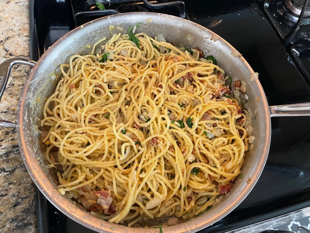 Nice, personally for me it needs some more pasta water to make it more saucy.