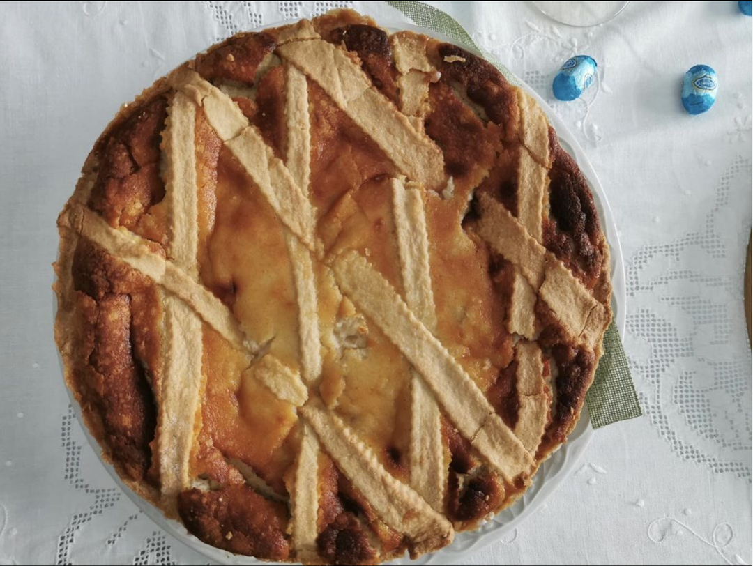 The pastiera is a shortcrust pastry cake filled with a mixture of ricotta, sugar, eggs and wheat boiled in milk. The dough is crunchy while the filling is soft. The color is very intense golden yellow. The aroma and flavor change according to the spices and aromas used during preparation.