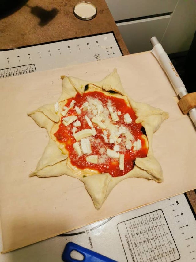 1. Margherita and fresh goat ricotta in each star point. You can also do a different stuffing for each point, it’s more fun.