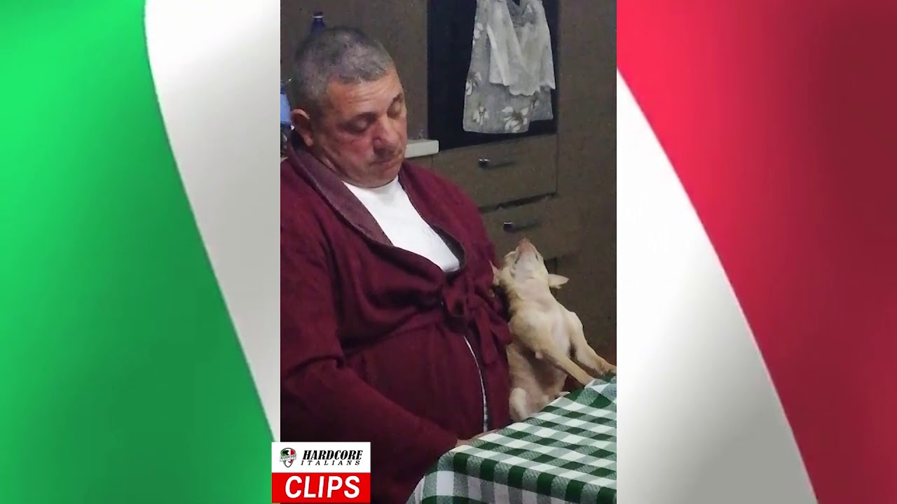 The aftermath of three plates of pasta! This Italian man and his dog can’t keep their eyes open.