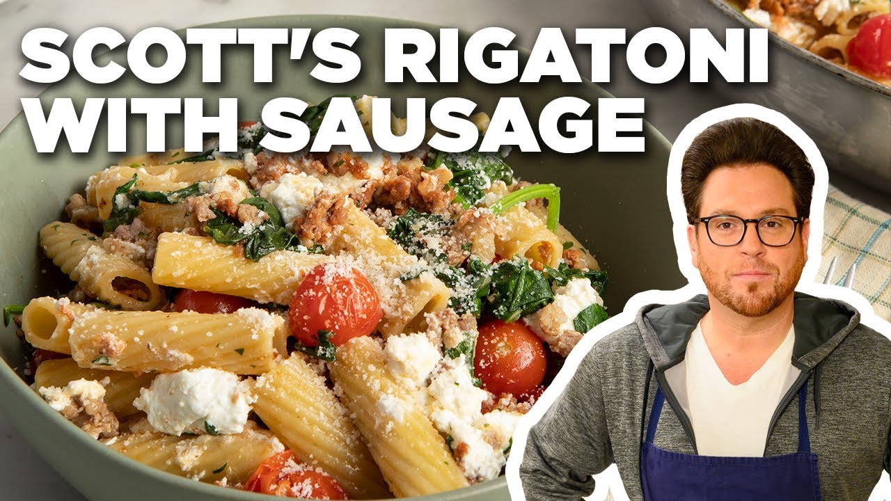 Scott Conant’s Rigatoni with Sausage, Spinach and Goat Cheese | Food Network