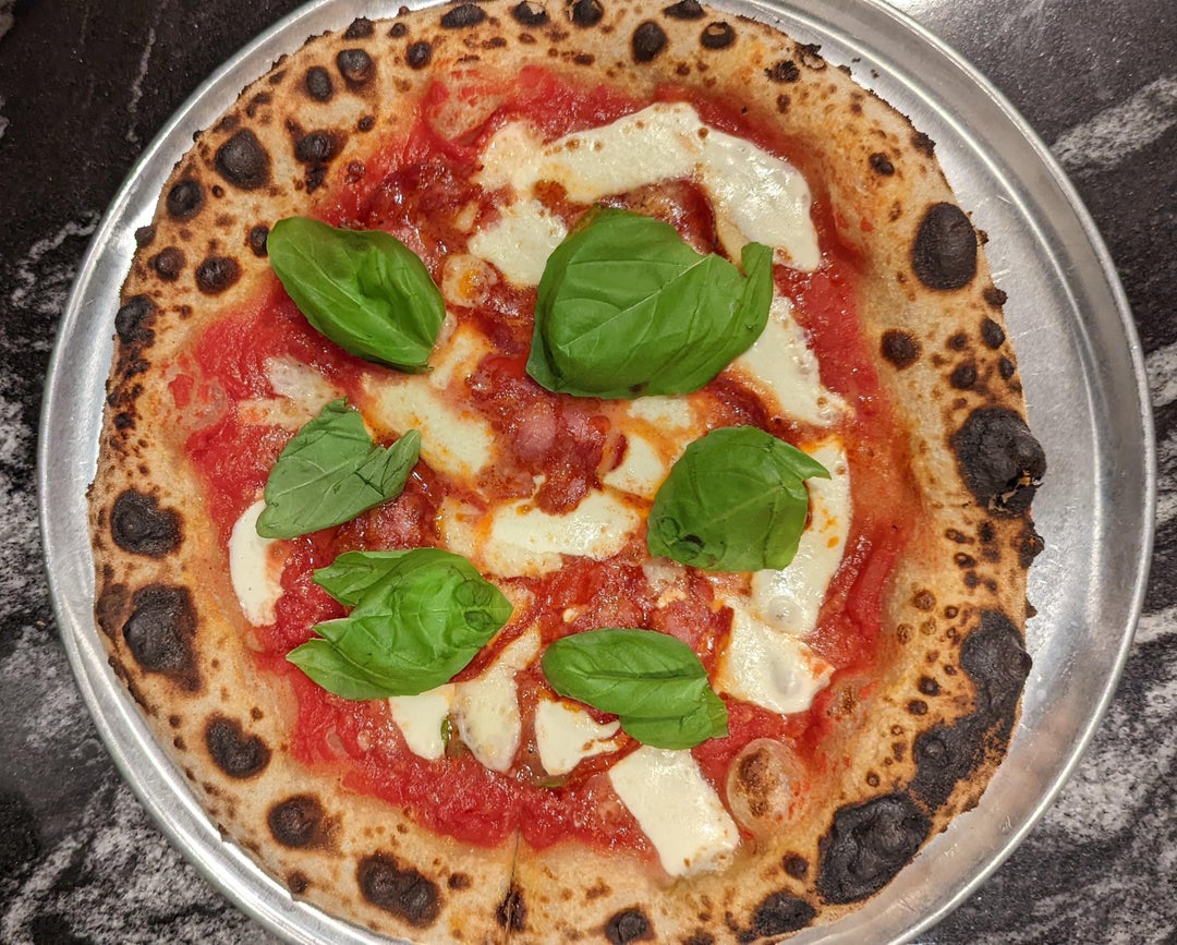 68% hydration, Caputo 00 Chefs Flour, 20% sourdough starter (~2 month old starter fed with King Arthur bread flour), 3% salt. 6hrs bulk ferment, 48 hr in fridge, 6 hours RT before cooking.