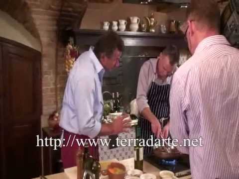 In this video the chef of terradarte.net Ennio Barbieri is the mentor of celebrity Gary Rhodes for Marche Region for his 2010 UKtv program, demostrating the recipe Wild Boar with Juniper Berries, or Cinghiale al Ginepro.