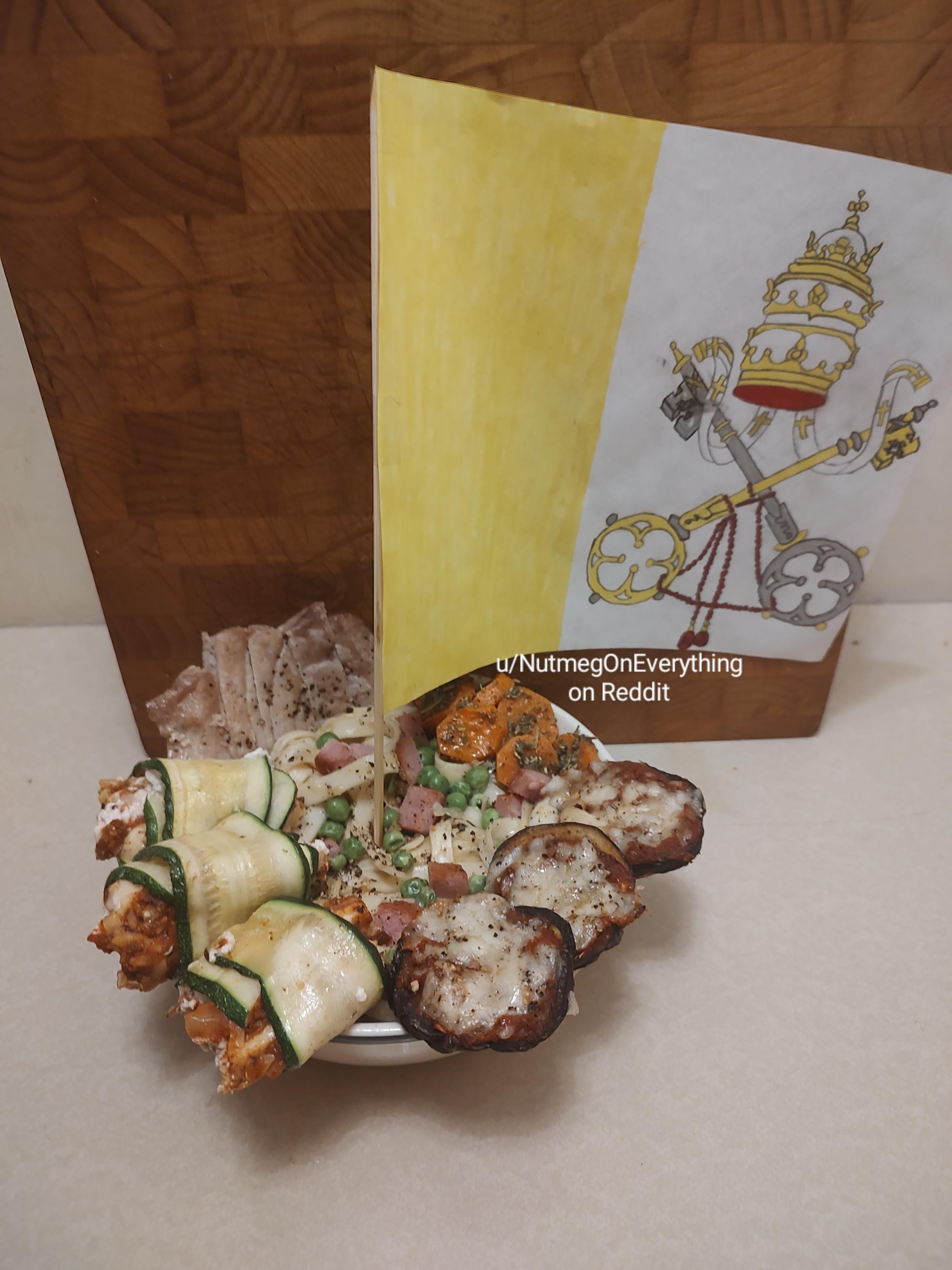 Nationality noodles: Vatican City by NutmegOnEverything homemadeitalian foodItalian Recipes 2 Comments NutmegOnEverything 4 years ago Vatican city is home to approximately 2.25 Popes per square km[flag of Vatican safety](https://www.reddit.com/r/vexillologycirclejerk/comments/sqn5zx/flag_of_vatican_safety/?utm_medium=android_app&utm_source=share)[I’ve been to Roooooome](https://youtu.be/cwIsAttR6-E?t=136)You all probably know this is the smallest country in the world and is located entirely within Rome, Italy, the only country like this is Lesotho in south Africa, which I remember from 7th grade)Edit: forgot San Marino LinaEveLina 4 years ago Why is this in such a small plate?Write A CommentYou must be logged in to post a comment.